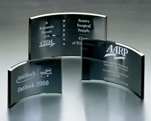 Optical crystal crescent plaque, large. Prices include one location imprint.