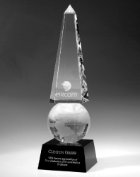Optical Crystal Monumental Globe award with black base. Formerly GCC-GL12.