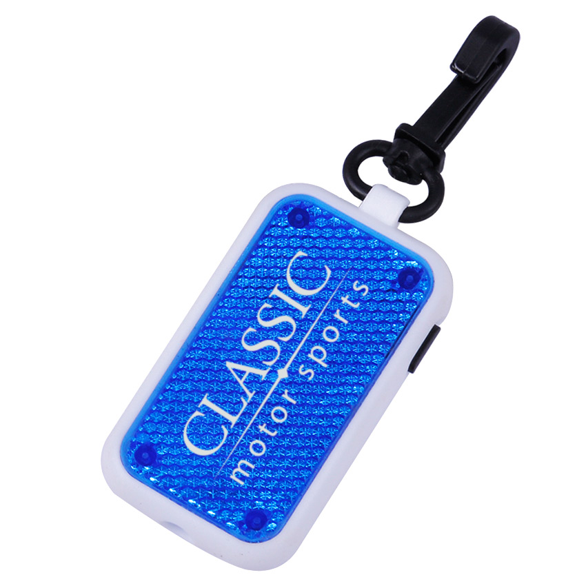 Rectangular emergency LED Tri-Setting Flashlight. Push the black button on the side once for a flashing effect, twice for strobe effect and a third time for a standard flashlight. Sides are clear and light up as well. Cell type batteries included along with clear insulation strip (Remove before use). Prices include one color, one location imprint. Colors Available: Blue, Green, Red and silver.