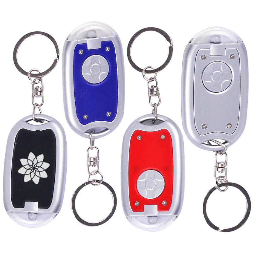 Classic rounded Key Chain with Single LED light. Push center to turn on LED light. Single cell type battery included. Prices include one color, one location imprint. Colors Available: Black, Blue, Red, Silver.