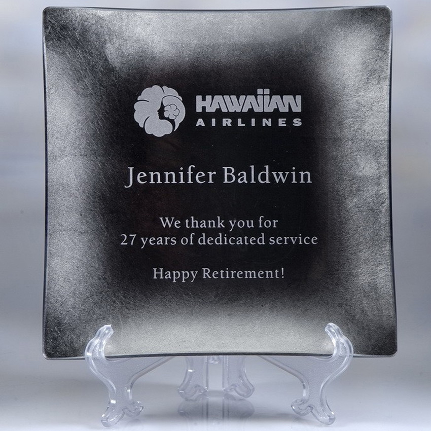Jade glass with gold leaf plate. Prices include one location imprint. Available in three two other sizes: GJC-QG12-M (Medium) and GJC-QG12-L (Large).