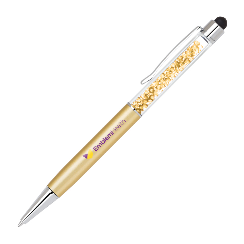 • Elegant brass stylus pen with matching crystals and barrel colors