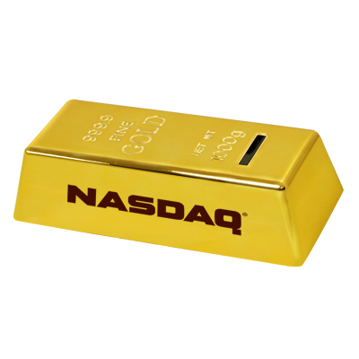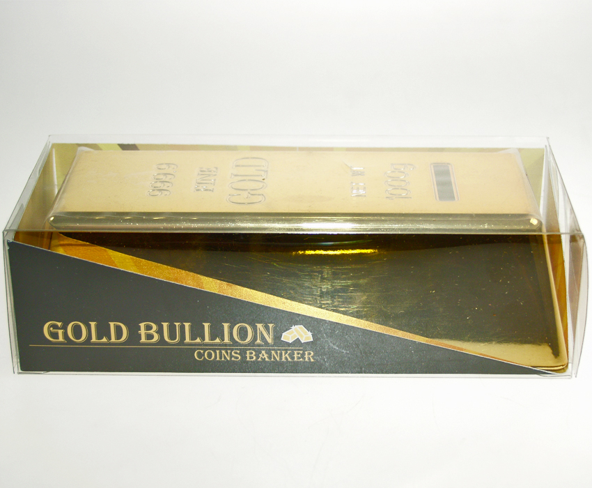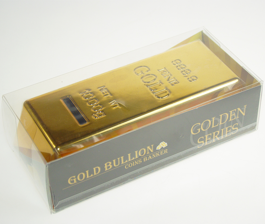 Gold bar coin bank made out of ABS plastic.